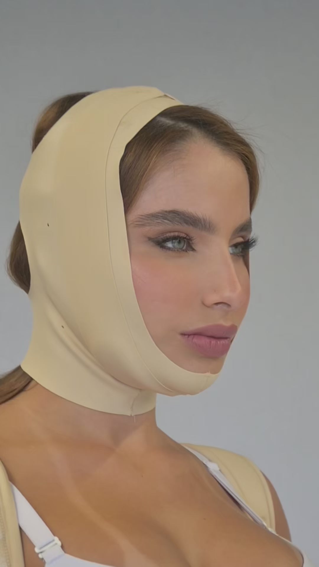 Garment designed for women seeking comfortable recovery and a more defined face after aesthetic procedures.